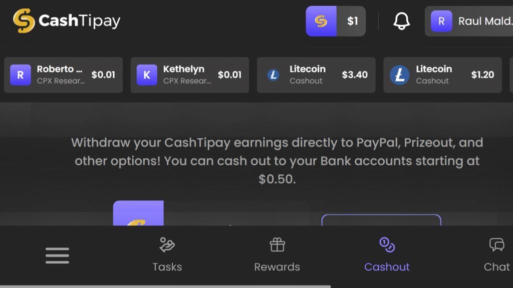 CashTiPay (cashtipay.com) es una plataforma de recompensas en línea que ofrece varias formas de ganar dinero o recompensas. Las actividades que promueven incluyen: